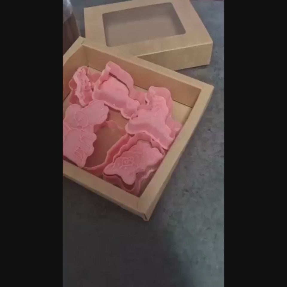 This dogs themed cookie cutter and embosser set includes 6 dogs cutters and stamps. Use the cutters to shape your cookie, then gently press the stamp into the dough to create imprinted detailing.